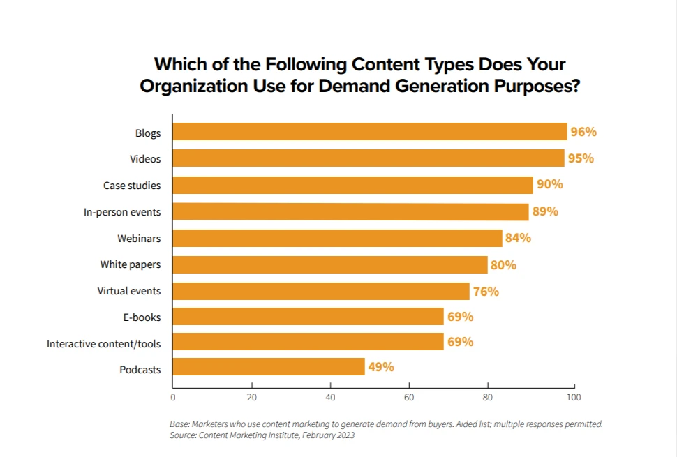 The effectiveness of blog as a marketing channel is well-documented. According to a CMI survey, blogs are the most frequently used type of content by marketers for demand generation.